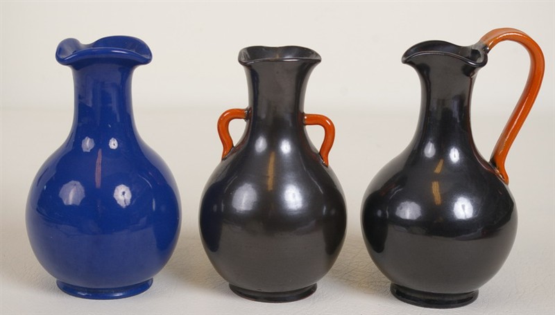 Min vas ser ut som den vänstra, utan hänkel, fast glasyren är gulbeige och koppargrön inuti vasen.