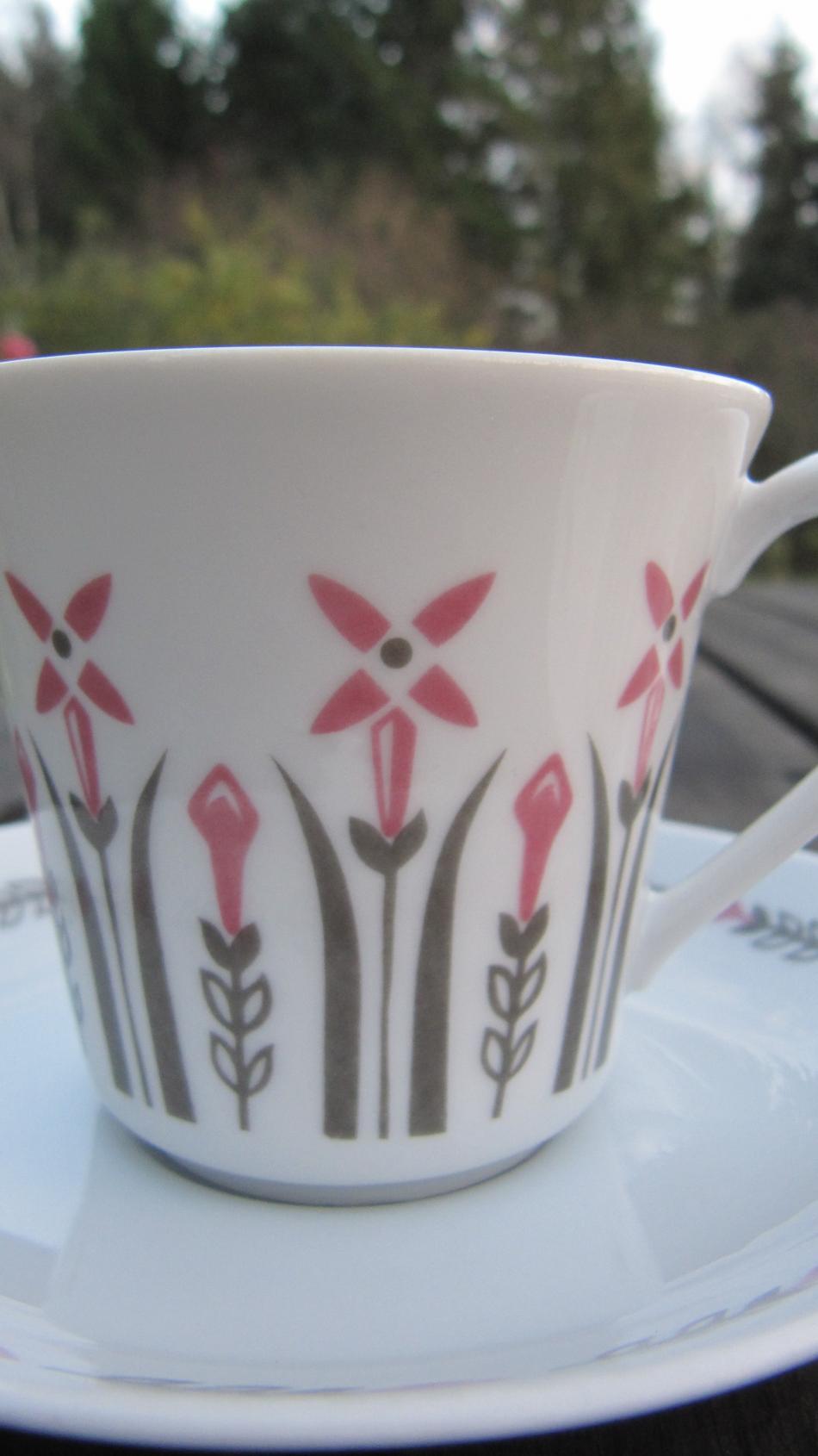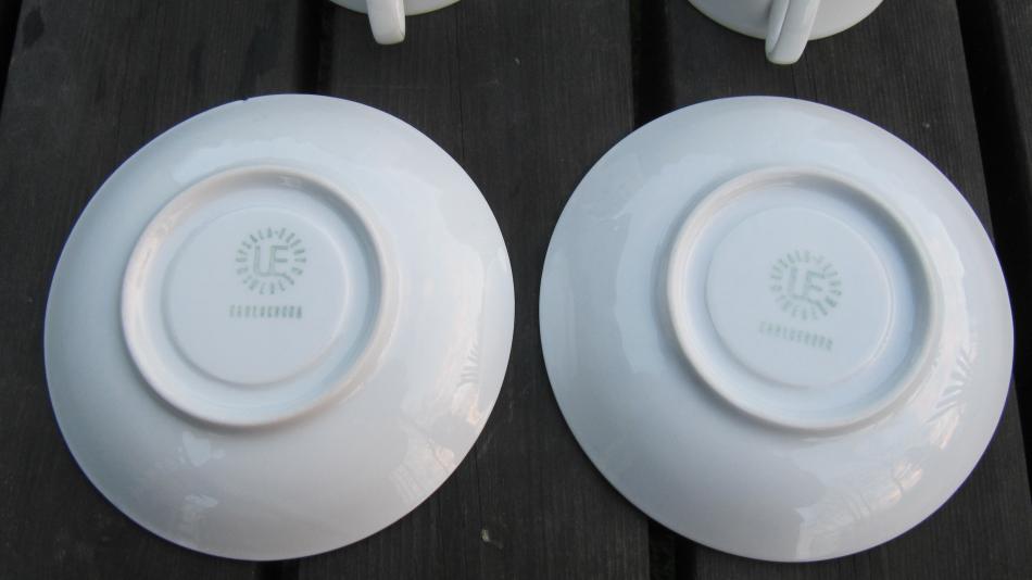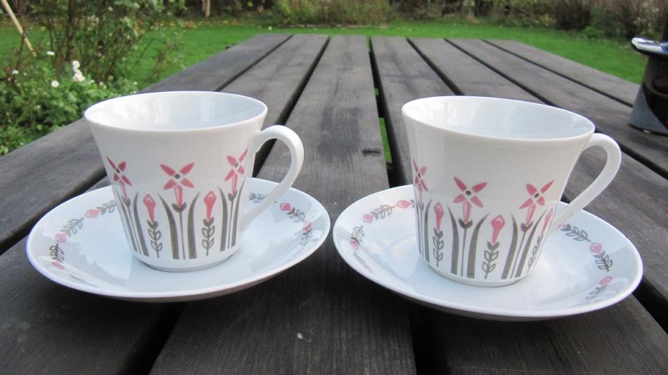 Ännu en lördag med en tur i omgivningen och ett inhopp på Kupan. Där hittade jag 2 kaffekoppar från Karlskrona med fin dekor, men för mej helt okänd och namnlös. Finns det någon som vet något om dekor och ev årtal.Eller är det en kopp med bara något nummer och utan namn?. Tacksam för minsta detalj.