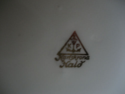 Jag har inköpt denna servis som låg i en fyndlåda tillsammans med en annan servis. Alla delarna är i perfekt skick och jag fick hela lådan för endast 20 kr. Är det någon som kan något mer om denna servis t ex när den kan ha gjorts av Hald och är det någon som törs sig på ett ungefärligt värde.