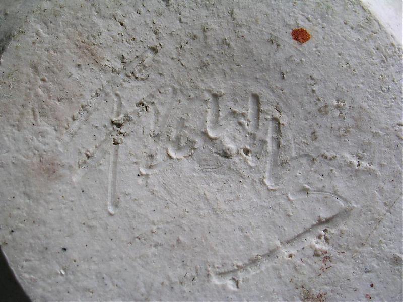 Jag har glott på den här vasen ett tag och har en annan syn på saken. Antingen Freddy eller Fanny och att etiketten tidigt ramlat av från den knottriga glasyren på chammotevasen.