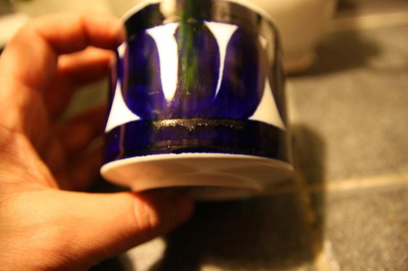 Trodde först det var något som kunde diskas bort. Ser nästan lite kladdigt ut, men det är bara lite strävare och lite mattare än resten av koppen.