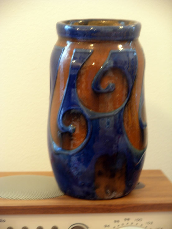 Det er kanskje ikke Roskilde lervarefabrik? Kan det være Løndals verksted? Annashåb? Danico? Eller et ukjent dansk verksted? De andre vasene ligger på tråden "Dansk Vase?" Kanskje vi kan flytte innleggene over i ny tråd? Noen som har synspunkter? mvh pepita
