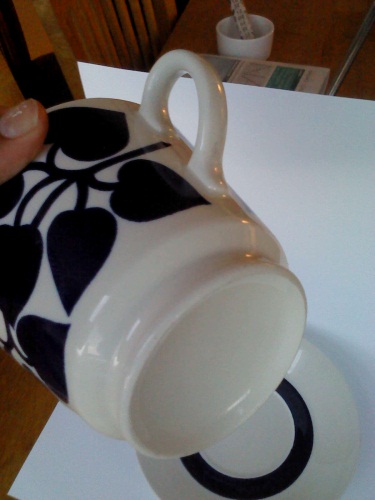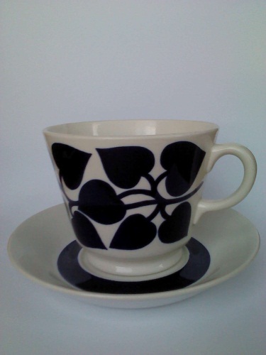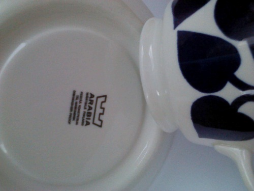 jag har några stora Arabia tekoppar som jag undrar om någon vet namnet på. De är i formen som Arabia Fiesta men mönstret är som ni ser helt annorlunda. Är det någon som vet vad de heter?