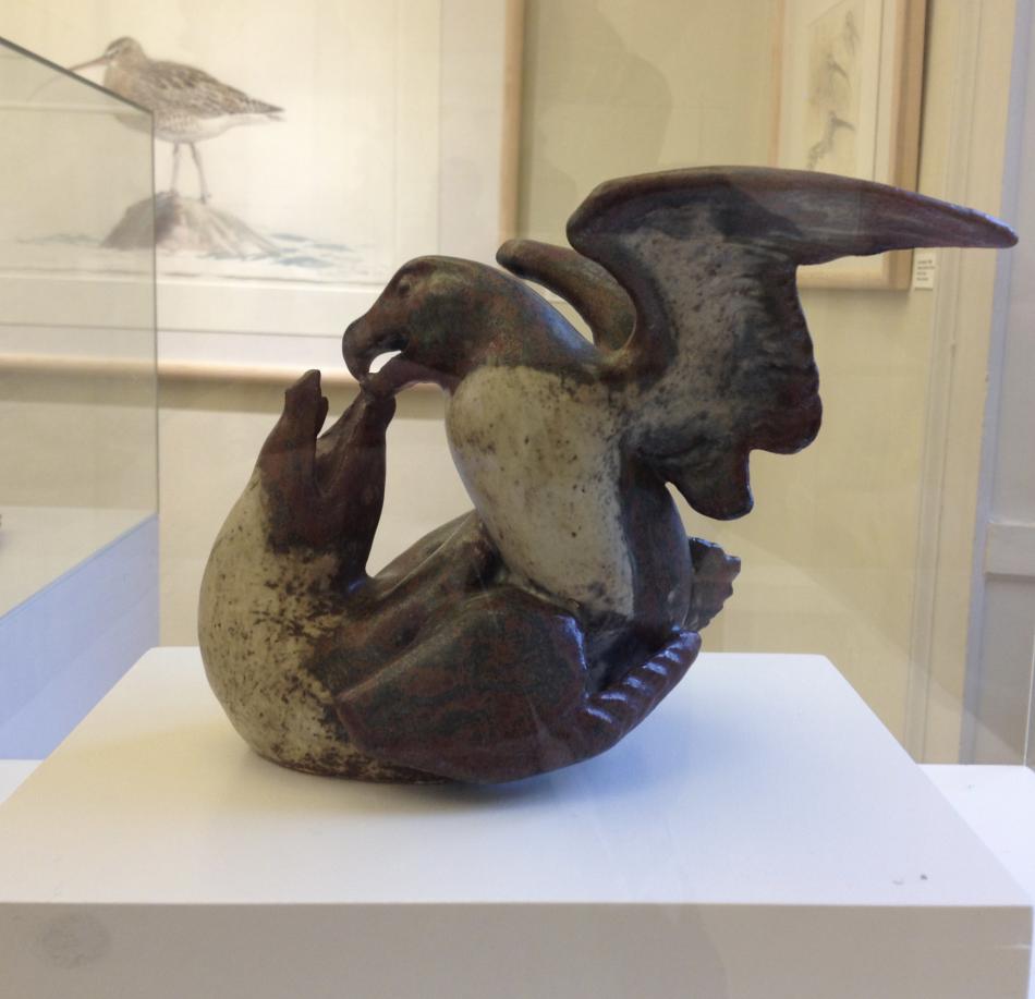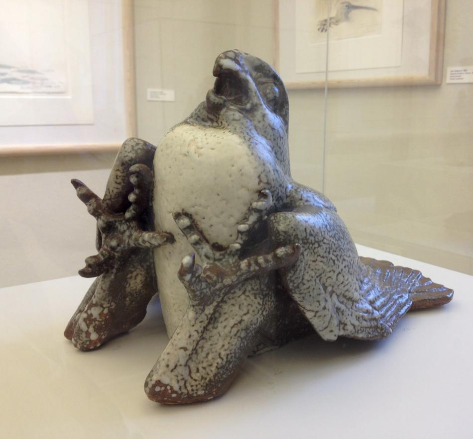 På Sophienholm ved Bagsværd sø er der nu en udstilling "Himlens fugle". Det er mest tegninger, akvareller og malerier, men der er også lidt keramik, det meste af Hugo Liisberg ( 1896-1958). Han har lavet de 4 fuglefigurer, de er i glaseret stentøj og tilhører Vejen Kunstmuseum.