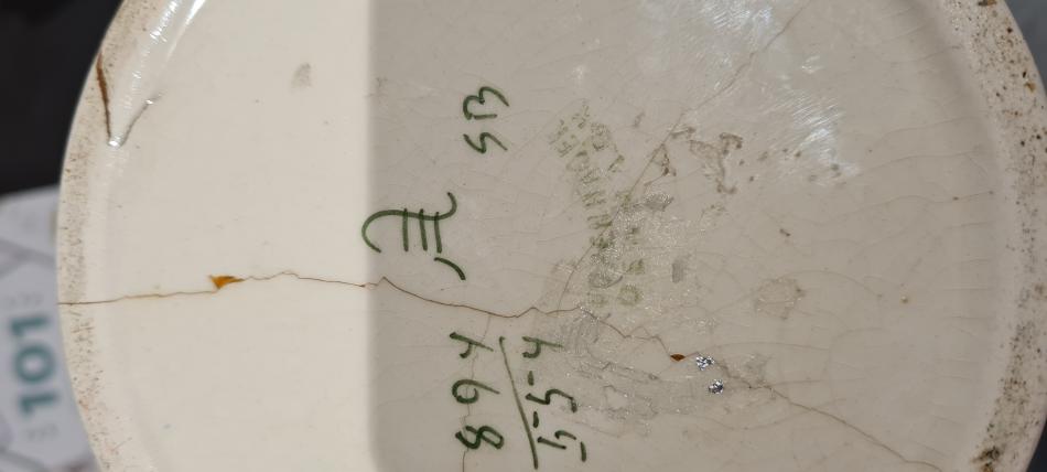 Hej! Jag jag köpte denna fina vas och vill säga att den är av Aluminia/royal copenhagen tidigt 1900-tal. Men jag hittar ingen konstnär som passar med signaturen. Vore väldigt tacksam för hjälp,