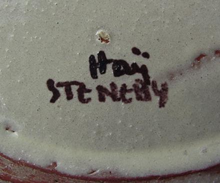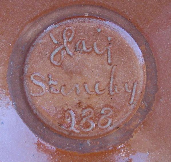 Jag flyttar över denna skål hit och hoppas andra kan flytta över sina Haij-föremål oxå. Läste snittet Gideon har i sitt inlägg och funderar lite över hennes märkning, om hon använde Haij Steneby över hela sin drejartid.