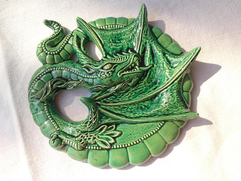 Hittade denna drakfigur samt kruka signerad av samma kille. Båda verkar gjutna i form och krukan är dessutom djupmärkt 311/1? Jag lämnade kvar en blå kruka som var i dåligt skick. Krukan är väl inte särskillt ögonhöjande men draken är ju åtminstone dekorativ. Men vem är han denne Roger och hur/var tillverkar man sånt här?