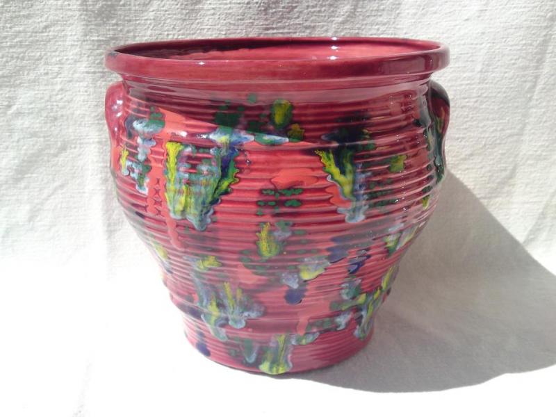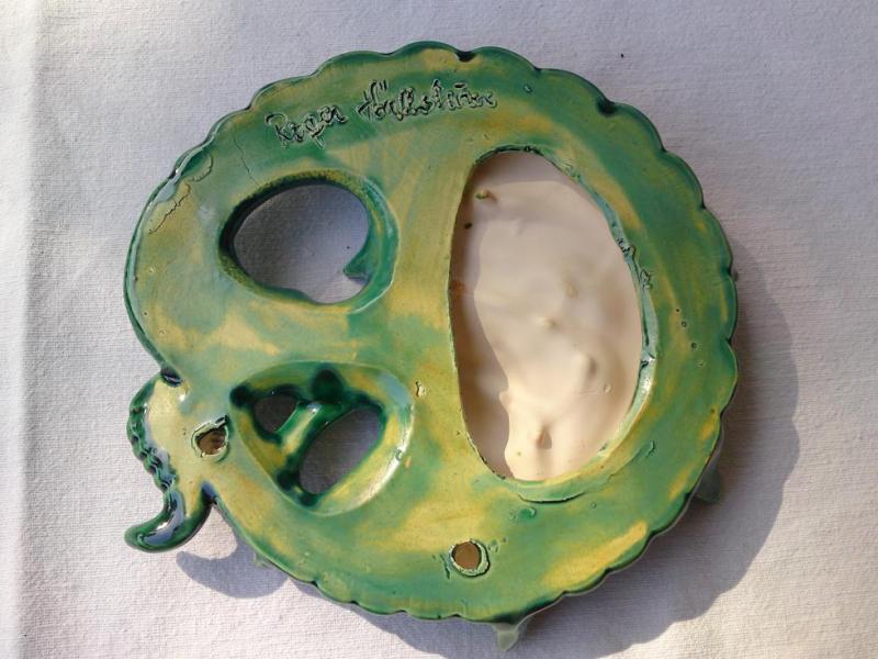 Draken är ju imponerande, men krukan verkar ju ha ett tyskt formnummer och hur är det med Rogers signatur går den bara igenom den röda glasyren. Jag får nämligen känslan att han har glaserat en tysk kruka.