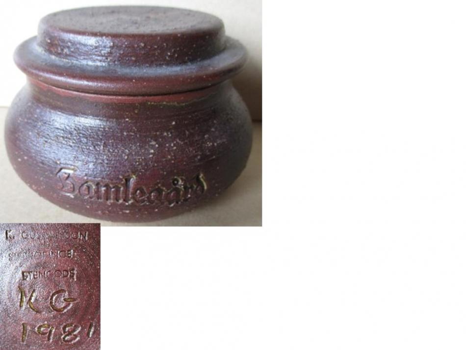 Här kommer en lite mer vardaglig lockskål från 1981. Vad Gamlegård (i Sireköpinge) står för vet jag inte men vi har ju på andra trådar sett att det finns flera gamla gårdar med koppling till keramik här i Sverige.