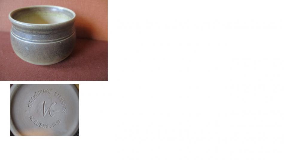 Inte fullt så spektakulär som inledningen på tråden är denna lilla skål i stengods (6,5 cm Ø och 4,5 cm hög) men vacker ändå.
