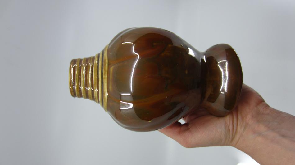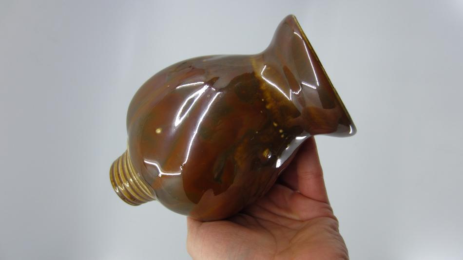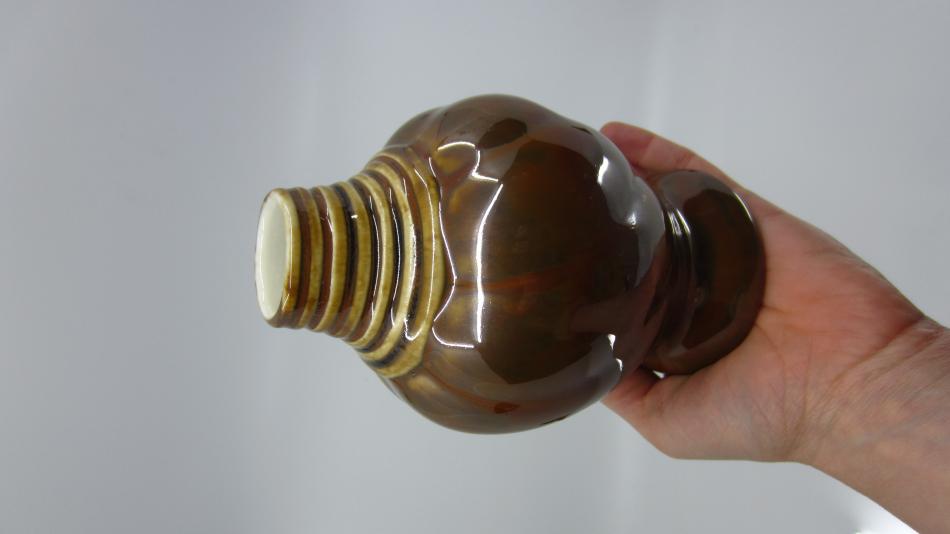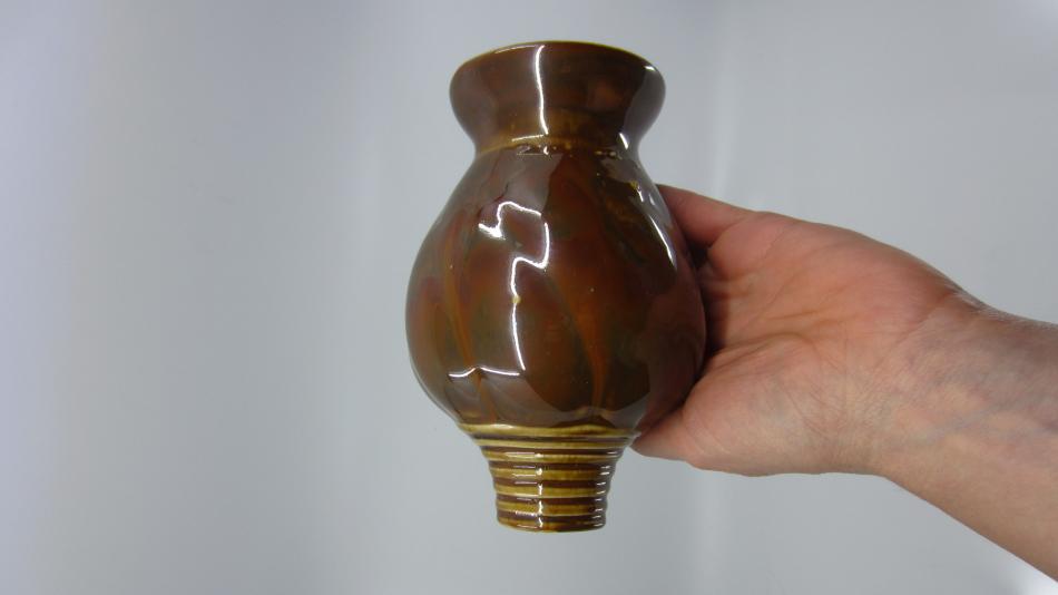 En förtjusande och intressant liten vas med så att säga "vriden godronnering" (som är svår att fånga på bild) och en fantastisk klang. Undrar vem som kan ha gjort den och när?