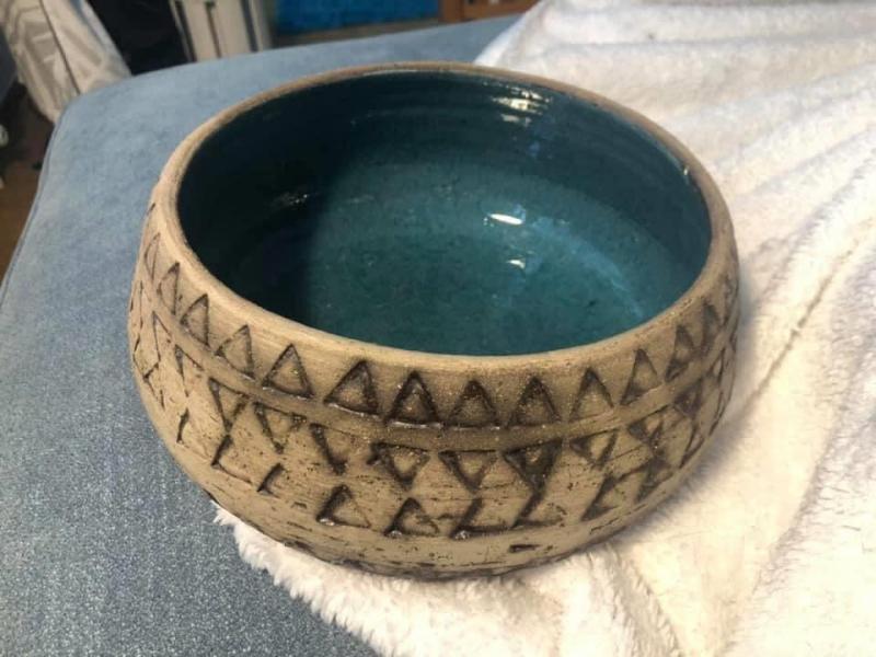 Hej! Jag har en ganska så stor skål i stengods, laserad på insidan i en underbar turkos färg. Jag undrar om någon känner igen den och kan hjälpa mig identifiera den? Kan det vara Ekeby? Jag blir inte klok på stämpeln.. Tack på förhand!