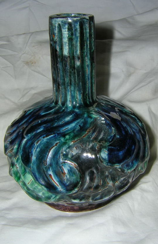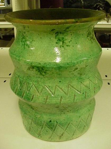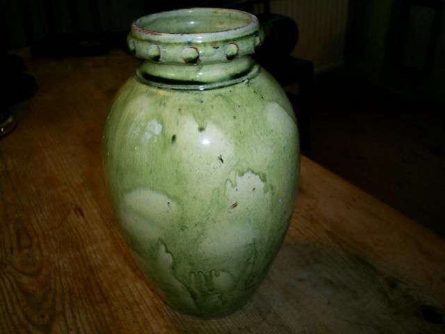 Besöket gav ändå det goda med sig, trots att föremålen inte fick kännas på, att man i fortsättningen får hålla ögonen öppna för just sådant här omärkt lergods. Den gröna vasen och skålen kan dock inte ha samma krukmakare som upphovsman, därtill är dekor och glasyr alltför olika. Det kommer göra osäkerheten än större framför loppisbordet, men desto mer spännande.