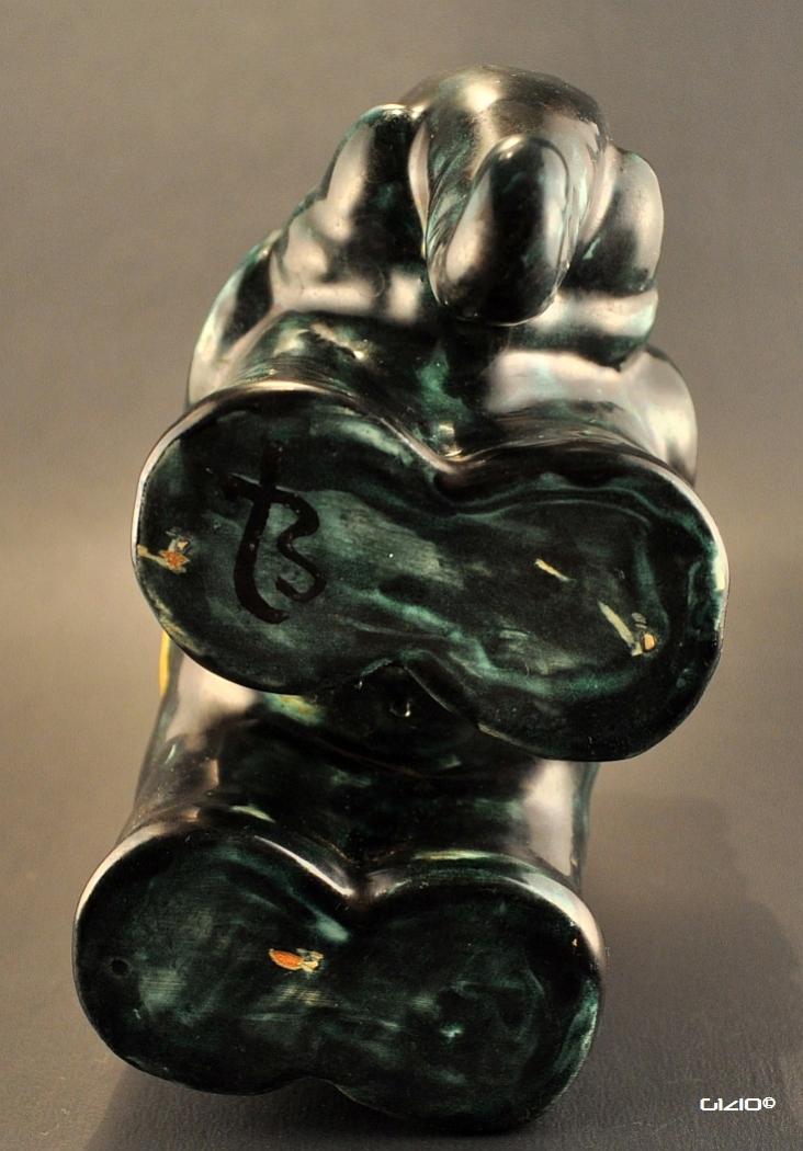 Faktum är att jag först såg den på en second hand-butik för 20:- för några veckor sedan, sedan kommer jag hem, och kollar Tradera för ett allmänt keramiksökande, och finner samma båtrackare där, för dåvarande uppe på över 300:-, börjar söka info om honom, och blir nyfiken, går tillbaks till samma butik ett par dagar senare och inhandlar detta exemplar. Tradera-skålen var märkt med både för och efternamn, medan mitt ex endast är märkt med efternamnet - målat - ej djuptryckt eller ristat.