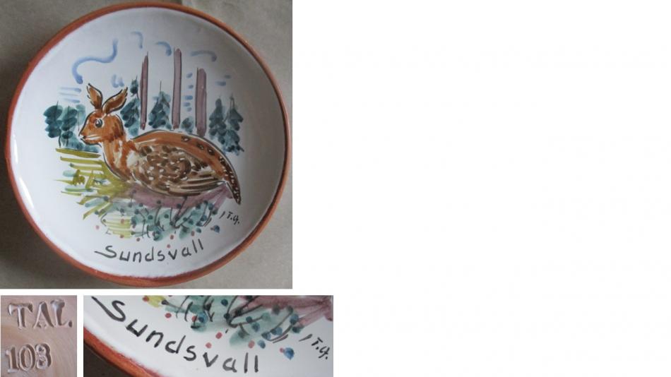 TAL keramik med bild på Odinsborg och G:la Upsala och sign H.L. Ett litet fat 11,5 cm Ø. Olrog beskriver både Birka och Odinsborg här :https://www.youtube.com/watch?v=c-sv2jyRJl8.