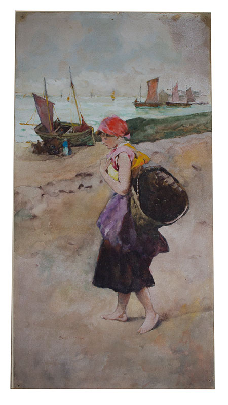 Kan någon med skarp blick och kunskaper om alfabetet lista ut vem som signerat den här? Jag tänker skiss eller kopia men hittar inget på nätet. Jag har googlat "clam/oyster/mussel gatherer painting/watercolour" och det finns ju en del i genren men hittar ingen exakt som denna.