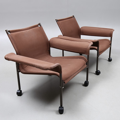 FÅTÖLJER, 1 par, "Vinge" stomme av stålrör, hjul, textilklädsel, Ikea, 1970-tal.