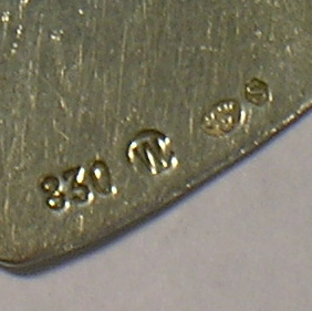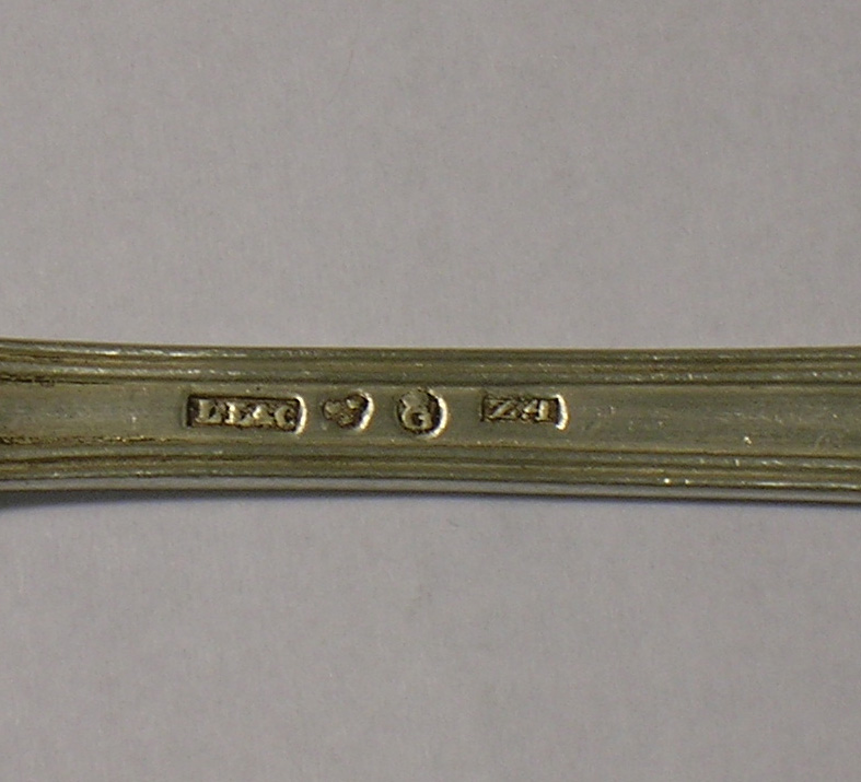 Jag har själv letat mig fram att Z4 på skedarna betyder att de är gjorda 1854. Att kattfotsstämplarna betyder att det är silver och att 830 betyder att det är rent silver.
