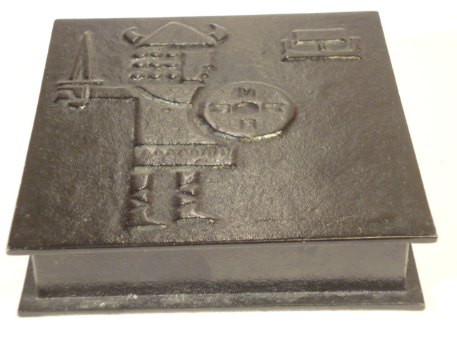 Kan någon berätta för mig vem som har gjort denna lockask i gjutjärn med vikingamotiv. Påminner lite om Höglund kanske, eller vad hette han på Elme glasbruk? John Käll?
