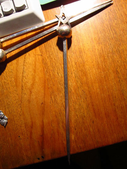 Och vad är det för något? Längd 24 cm och spetsiga nedåt och upptill en kula och kanske ÅV eller ser det ut som en passare? Tacksam för hjälp! Jag antar att det inte är silver