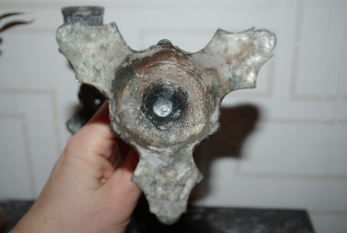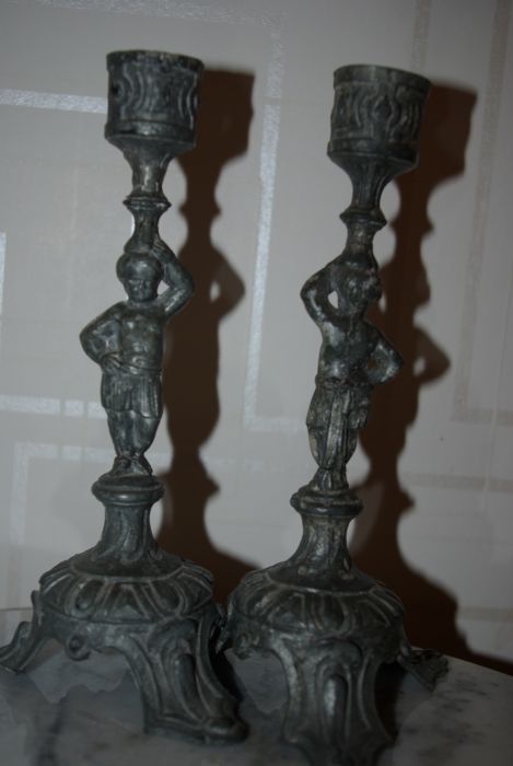 Jag tycker att de är fina trots några skador. Undrar nu vad det kan vara för ålder och land, om någon vet det. Och vad är det ljusstakarna är gjorda av?