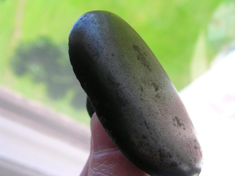 Några små inköp på dagens storloppis på torget i Nora blev det. Den är lilla, 6 cm långa, saken blev jag nyfiken på. Undrar om den är tänkt som glättjärn för manchetter, kragar och liknande kanske, vad tror Ni?