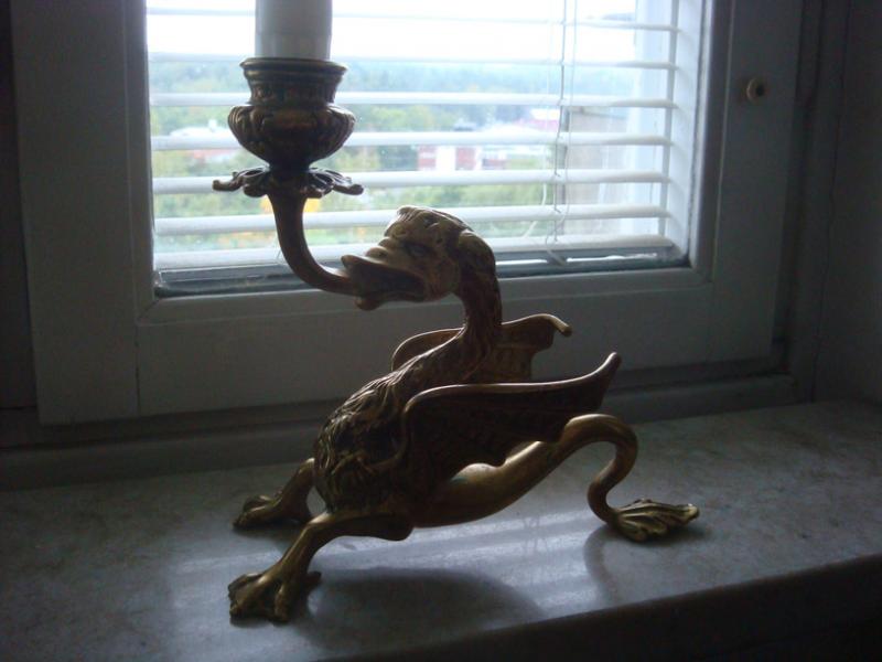 Kan den här i mina ögon vansinnigt justa saken vara en kopia? Talade häromdagen med en bekant som åtminstone normalt är kunnig på den här typen av föremål och enligt honom är det osannolikt att den skulle vara tillverkad vid Tiffanys p.g.a. gjutningens låga kvalitet. Själv vill jag inte riktigt gå med på det (och är medveten om "vill" i den meningen). Just den här modellen har jag inte hittat andra exempel av men en annan grip, modell 0416, lär ha varit i produktion sedan 1800-talets senare hälft och det gäller förmodligen även denna, med hänsyn till numrens närhet. Min tanke är då att gjutningens kvalitet snarare kan vara en fråga om ålder? Den andra griparna jag hittat, vilka håller bättre kvalitet i gjutningen (dock inte formmässigt) har alla varit tillverkade runt 20-talet.