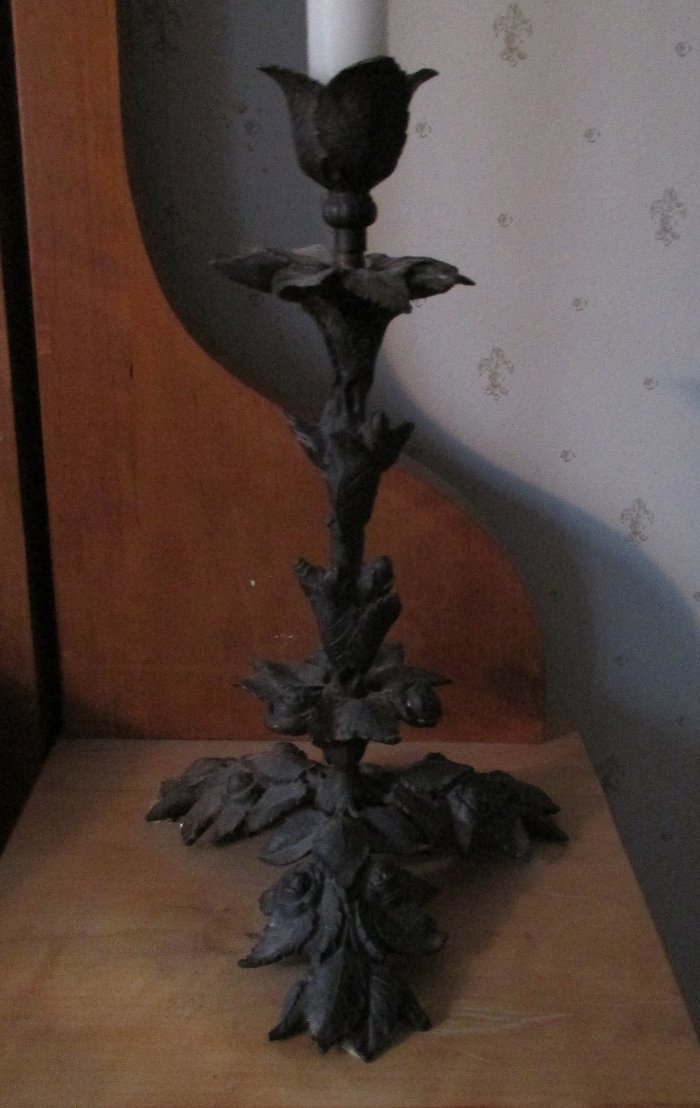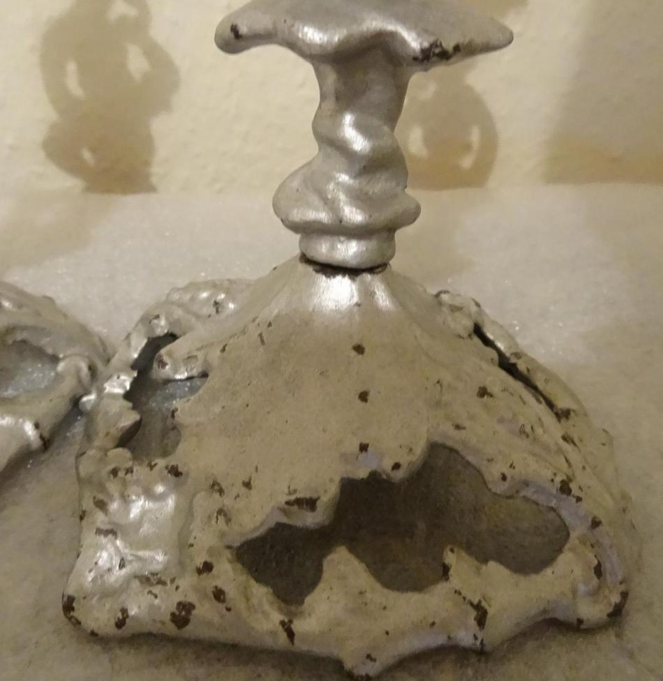 Jag har iallafall ett par ljusstakar i gjutjärn som inte är uppsnofsade med färg utan helt i original på min spegelbyrå i sovrummet..Tyvärr är den fasttejpad(kattsäkrad
