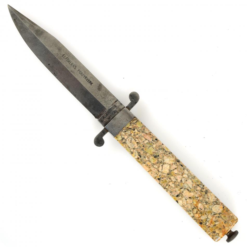 Det är klart en kniv som har fått ett ett handtag i första halvan av 1900-talet från Älvdalens Nya Porfyrverk https://sv.wikipedia.org/wiki/%C3%84...Nya_Porfyrverk
