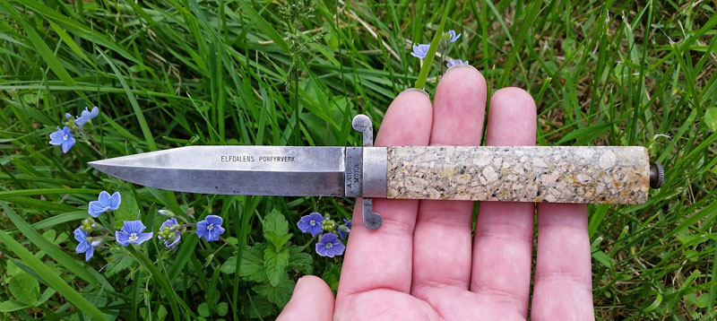 Var upp till Älvdalens porfyrmuseum och visade kniven.