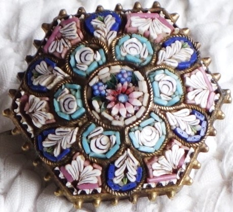 Brosch i millafiori, troligen från runt 1900-10.