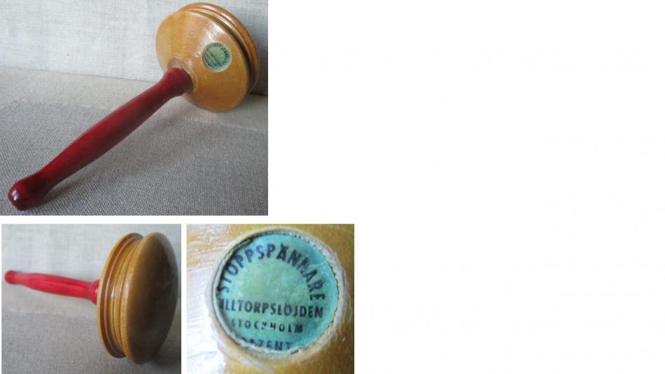 Lilltorpslöjden i Stockholm hade inte bara patent på stoppdosan utan också på stoppspännaren. Tyvärr saknas spiralfjädern på den här så det är stopp med all lagning av strumpor...