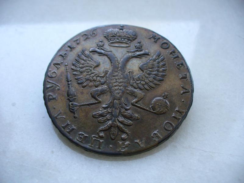 Myntet är mycket riktigt en poltina, dvs 50 kopek eller en halv rubel från 1726 från Katarina I:s regeringsperiod.
