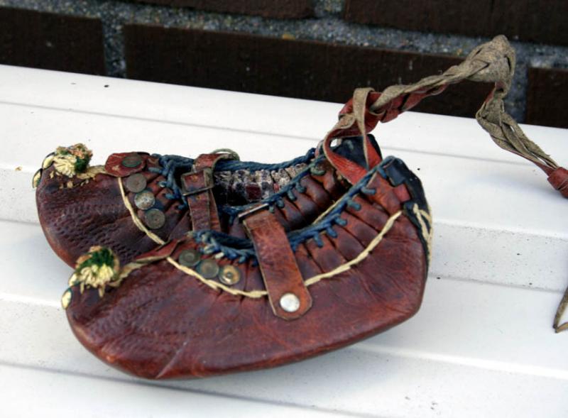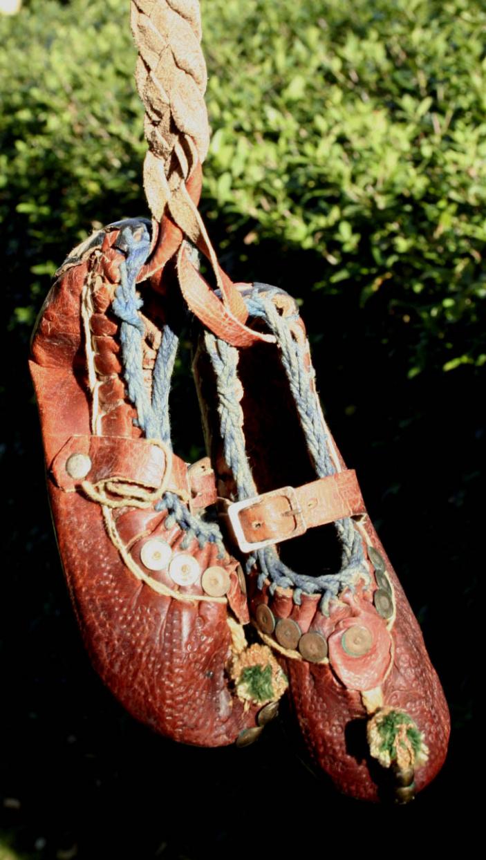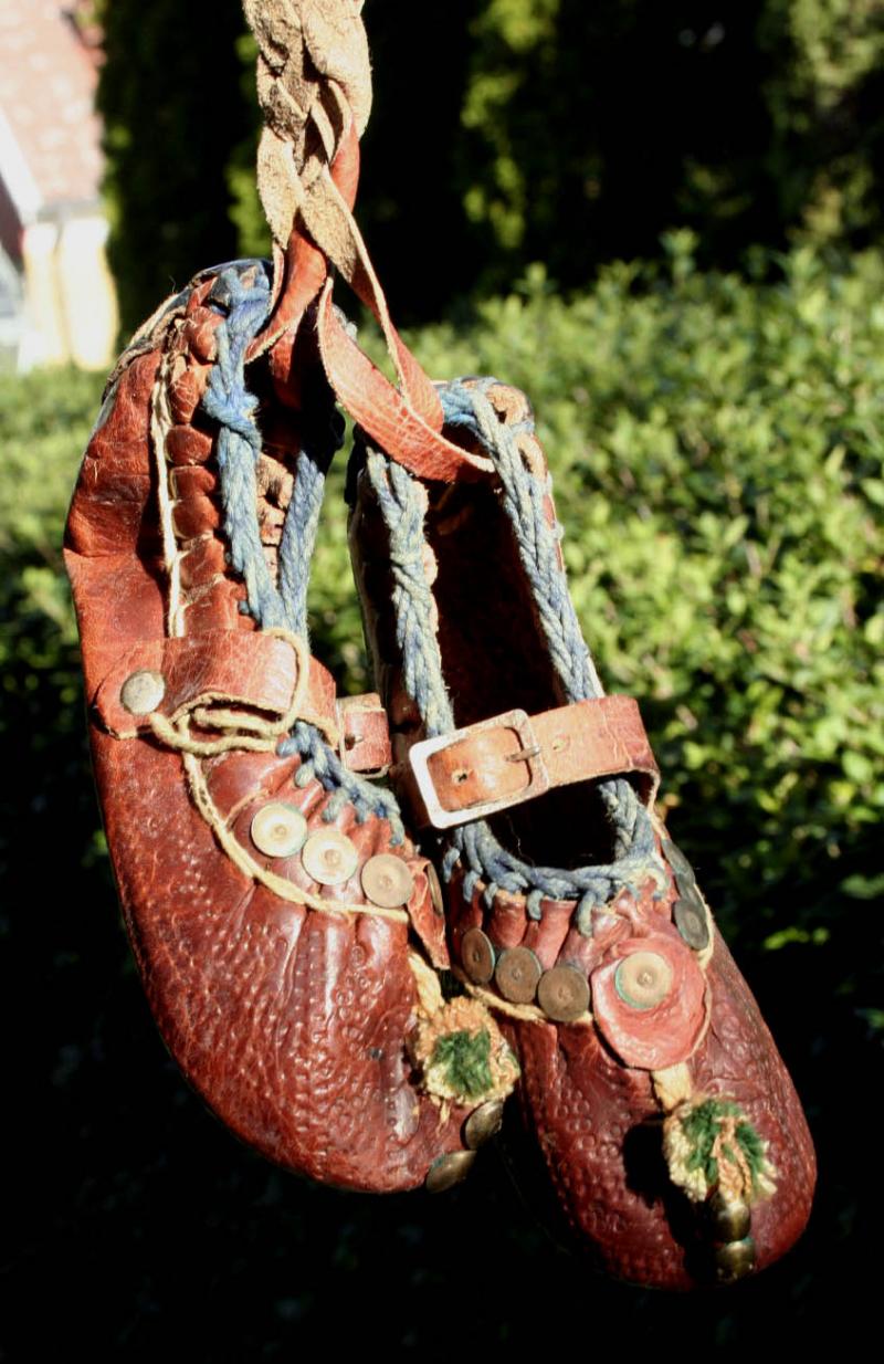 Skinnet är stenhårt. Har det varit prydnadsskor från början eller kan de ha använts? Var kan de vara tillverkade?
