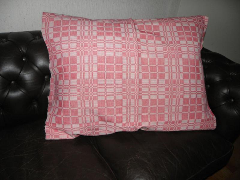 Har tydligen använts som gardiner för baksidan är blekt på vissa ställen. jag har tänk göra kuddöverdrag av väven och undrar om någon känner till vad textilen kallas.