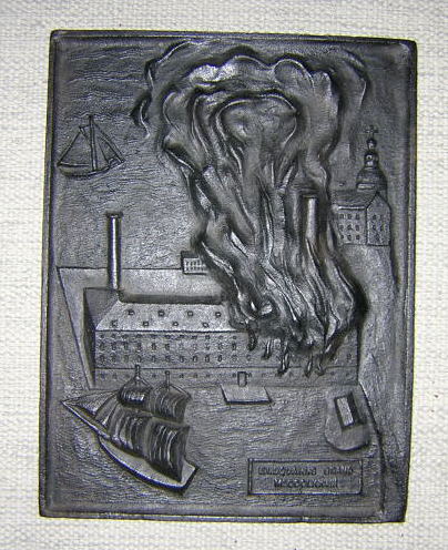 Har en platta i gjutjärn som föreställer
