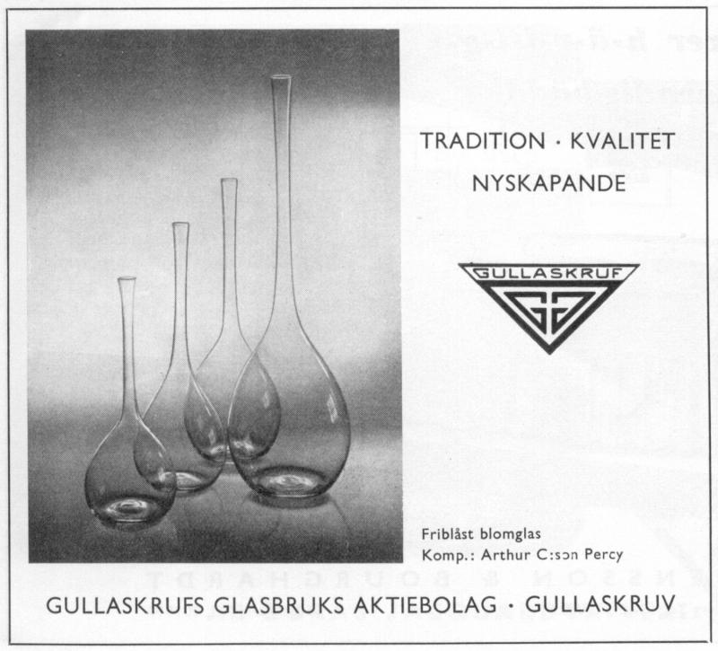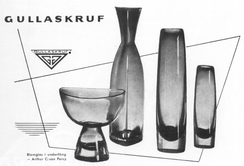Med tanke på hans enorma produktion och hur många olika uttryck hans konstnärskap tog sig är det ju skam att vi hittills inte haft en tematråd om Arthur Percy. För att råda bot på detta börjar jag med en bild på lite glas, och uppmanar övriga att mata på med mer, och hoppas att få se såväl mer glas som porslin, måleri, textil och allt annat som han kan tänkas ha ägnat sig åt! Vem vet, det kanske blir en dokumentationstråd av det hela till slut...
