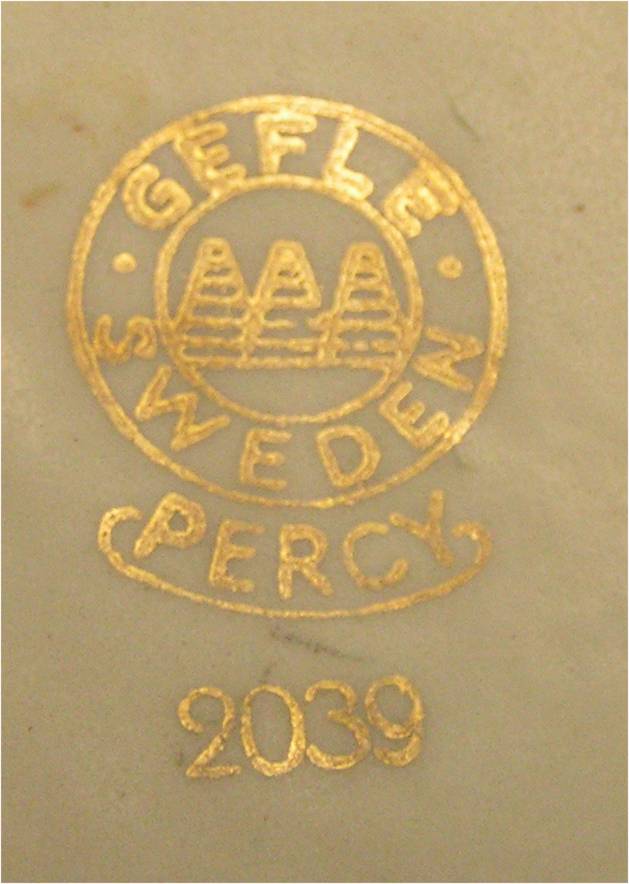 Jag har ärvt en skål och ett par ljusstakar märkta Gefle Percy 2039 (se bifogade bilder). Jag skulle vilja vet vad de heter, när de tillverkades och vilket värd de kan ha. Har inte hittat nån bild på dem på www.svenskt-porslin.net.